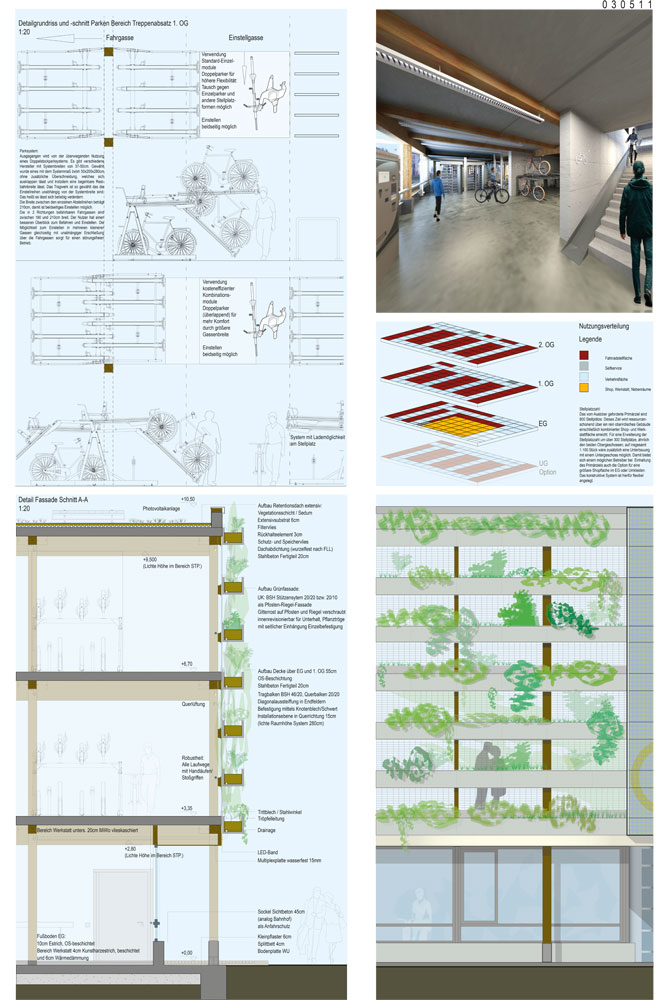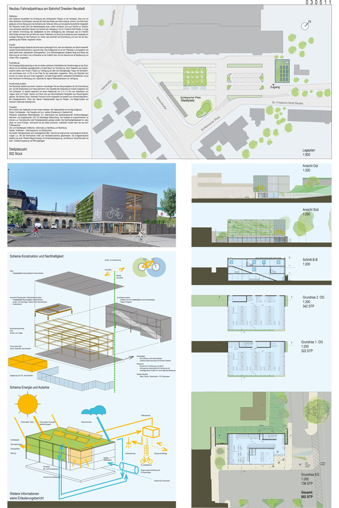 Das von MBR Architekten entworfene Gebäude komplettiert die Einfassung des Schlesischen Platzes an der Nordseite. Dies wird mit einer attraktiven Grünfassade, bewusst die maximale Breite und Höhe nutzend, erreicht. Zum Bahnhofsgebäude wird der Bezug über die Aufnahme der Höhe der Attika und die gleiche Sockelhöhe hergestellt. Die Platzecke erhält durch die Medienfassade einen weithin sichtbaren und auch Nachts zur Orientierung wirksamen deutlichen Akzent und markiert den Übergang in die Dr.-Friedrich-Wolf-Straße. Im Zuge der weiteren Entwicklung des Stadtplatzes ist eine Verlängerung des Gehweges aus Dr.-Friedrich Wolf-Straße kommend bis auf Höhe der neuen Platzkante und damit die Ausbildung eines Vorplatzes am künftigen Radweg für das Parkhaus von Vorteil, das erleichtert die Erschließung und kann bei der Neugestaltung des Platzes umgesetzt werden.