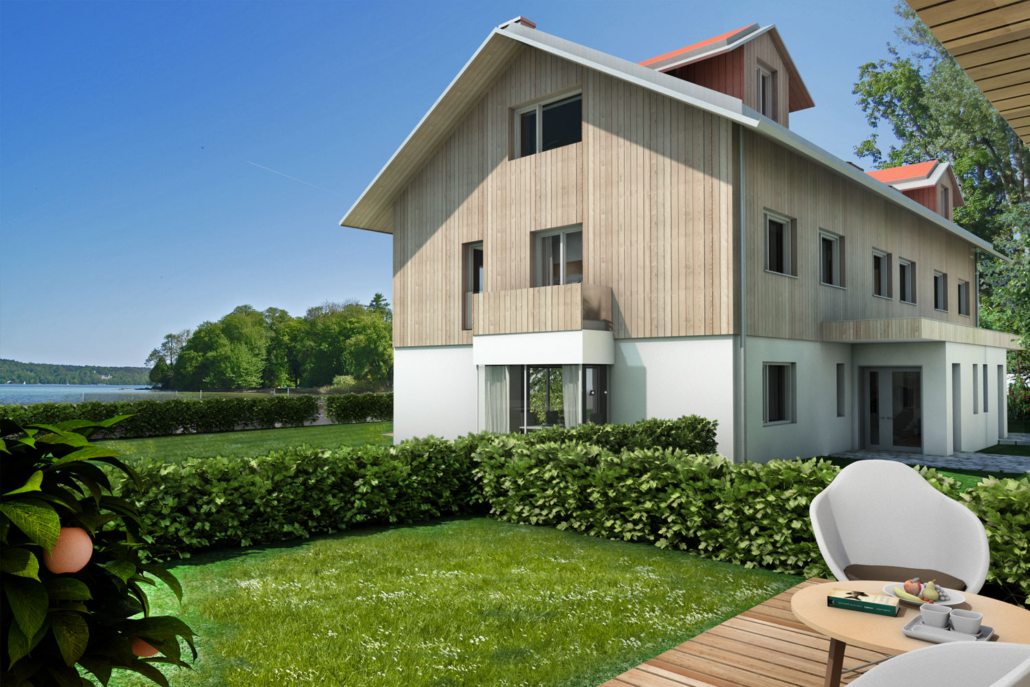 Die klare Architektursprache verbindet Regionalität mit moderner Wohnqualität – nachhaltig, langlebig und sensibel gegenüber dem landschaftlich reizvollen Kontext am Starnberger See.