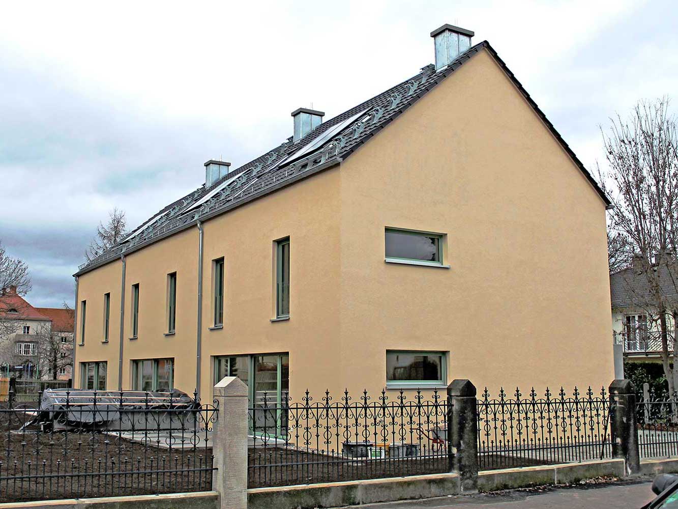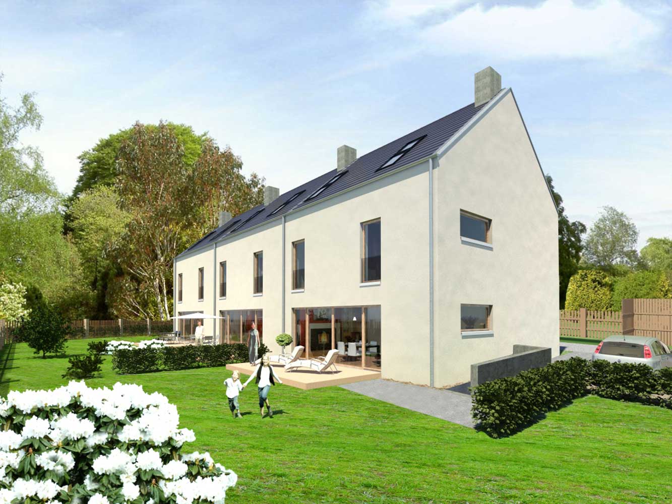 Neubau einer Reihenhausanlage bestehend aus drei Reihenhäusern und Gemeinschaftsanlagen.
