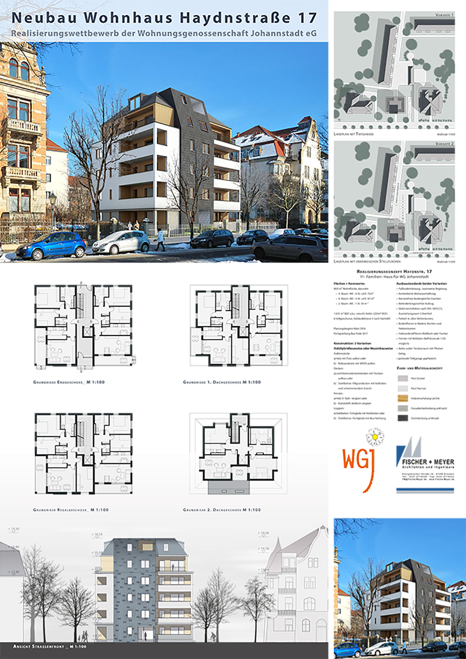 Im Rahmen des Wettbewerbs wurde neben der konventionellen Massivbauweise auch eine Holzbauvariante untersucht und in Ihren Vor- bzw. Nachteilen gegenüber gestellt.